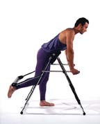 Lean forward while holding handle