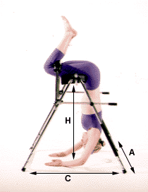 by hanging inverted on the Inversion unit. Tension on the spine is